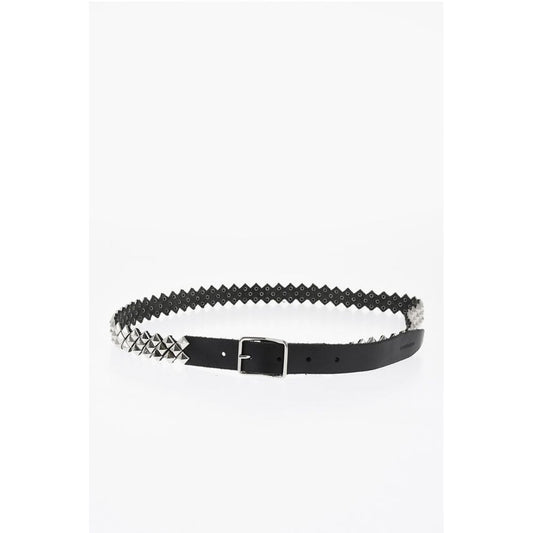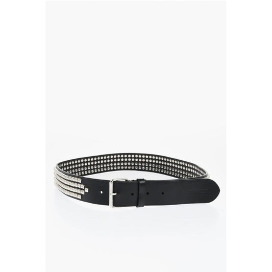 Dolce & Gabbana Black Calf Leather Studded Silver Buckle Belt