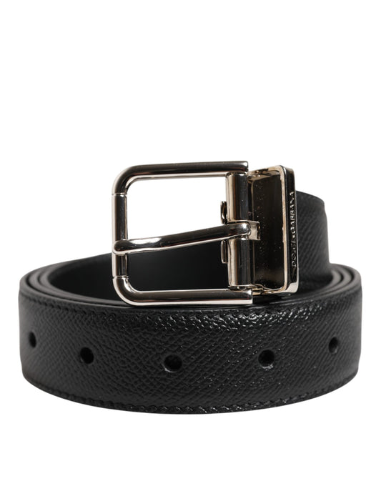 Dolce & Gabbana Black Calf Leather Silver Metal Buckle Belt