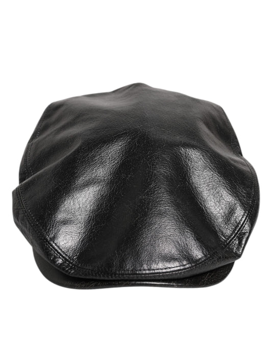 Dolce & Gabbana Black Calf Newsboy Capello Cabbie Hat