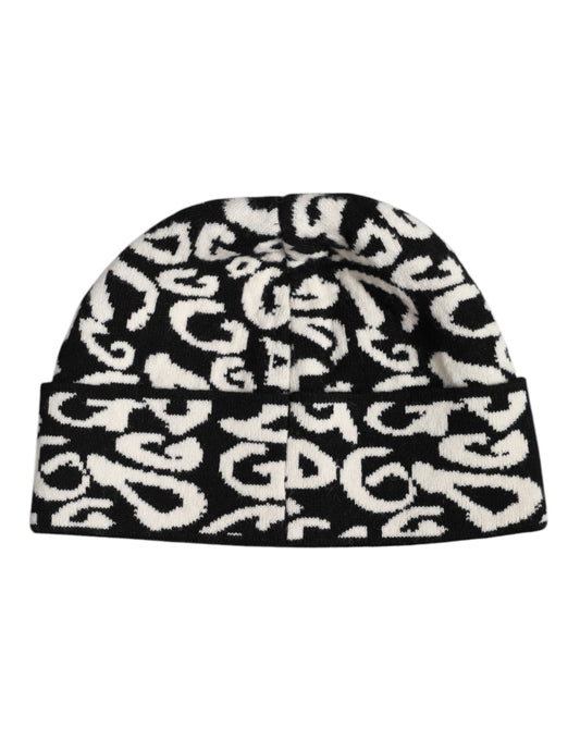 Dolce & Gabbana Black White Wool Knitted Winter Beanie Hat