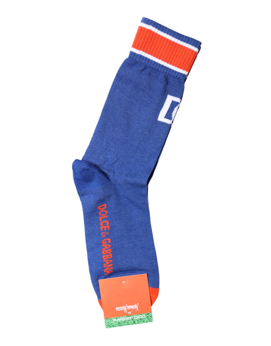 Dolce & Gabbana Blue Cotton DG Logo Print Mid Calf Socks