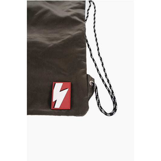 Neil Barrett Solid Color Nylon Drawstring Backpack with Monogram