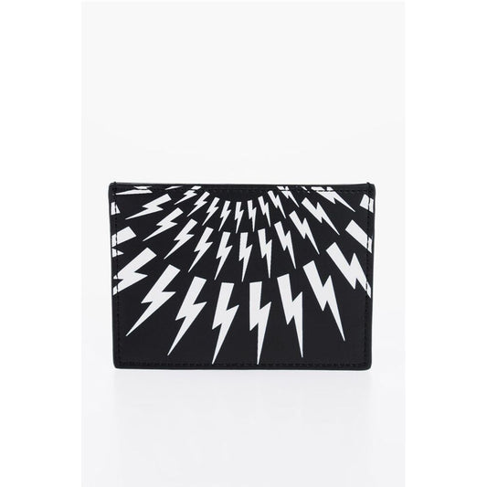 Neil Barrett Leather FAIR-ISLE THUNDERBOLT Card Holder with Contrast Prin