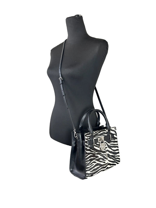 Michael Kors Hamilton Small Leather Zebra Print Satchel Crossbody Black/White