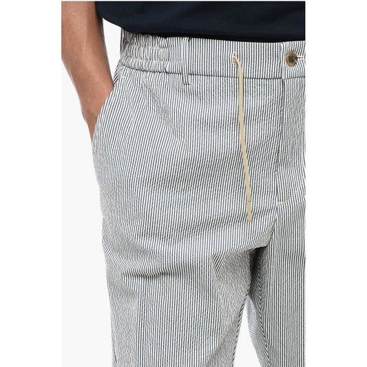 Berwich Two-Tone Striped Casual Pants with Elastic Waistband