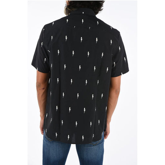 Dolce & Gabbana Black Polka Dot Collar Tie Neck Casual Shirt