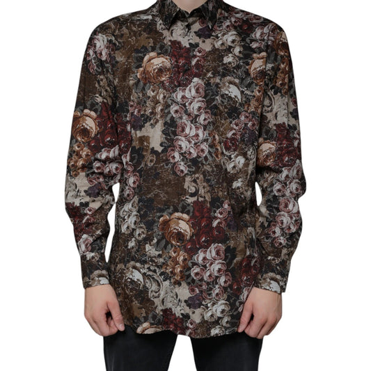 Dolce & Gabbana Multicolor Floral GOLD Cotton Men Dress Shirt