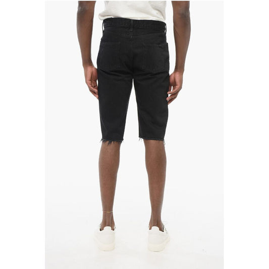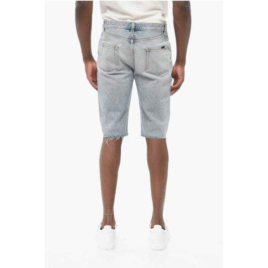 Saint Laurent Light Wash Denim Shorts with Fringed Bottom