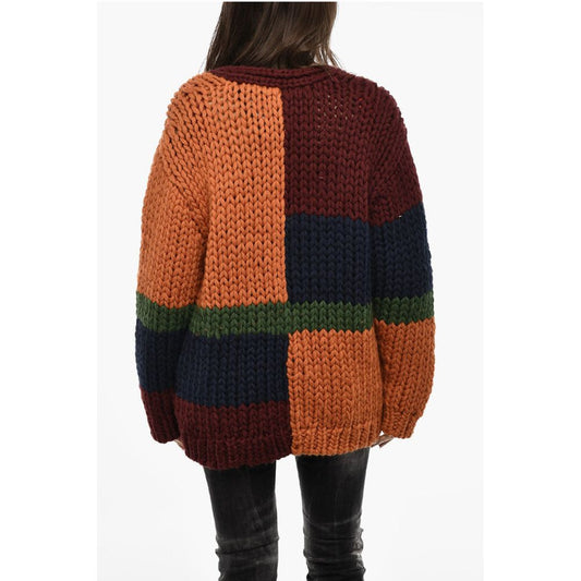 Dsquared² Color Block Maxi Cardigan with Double Pockets