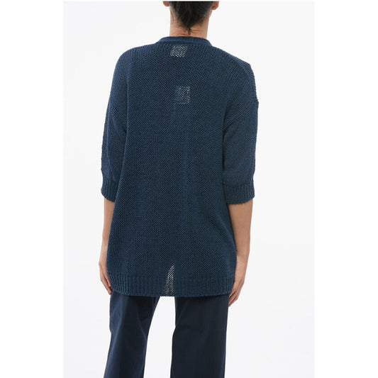 Roberto Collina Short Sleeved Cotton Blend Open Front Cardigan