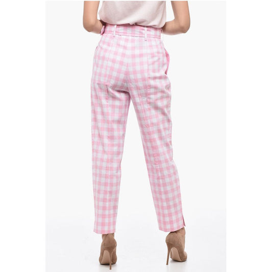 Prada Single-pleated Vichy Cotton Pants with Belt
