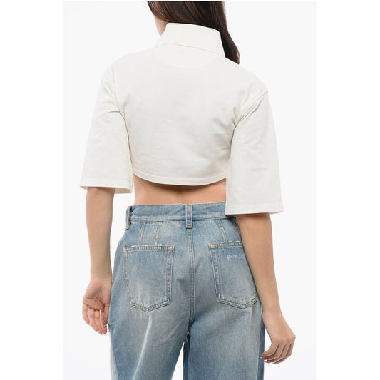 Palm Angels Short Sleeved Cropped Polo With Embroidered Logo