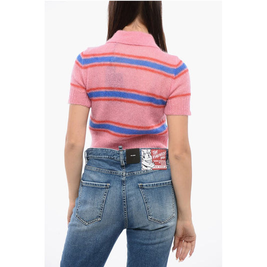 Dsquared² Mohair Blend SOFT Crop Polo with Balanced Stripe Motif