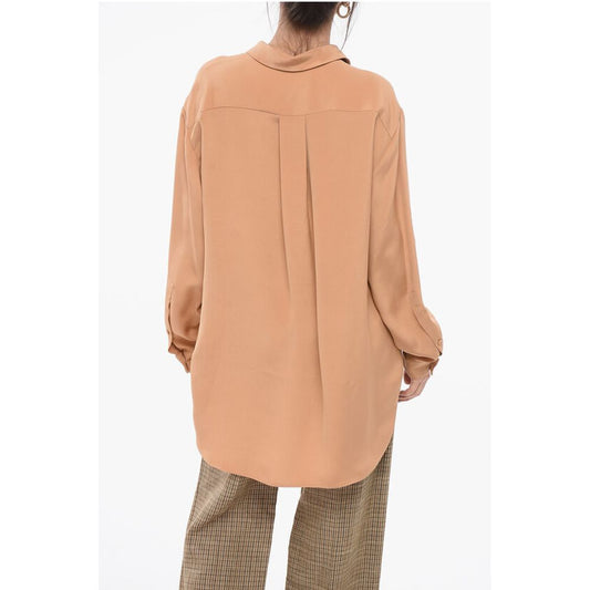 Super Blond Silk Oversized Shirt with Asymmetric Hem