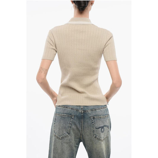 Off-White Ribbed Knit Top with Logoed Patch