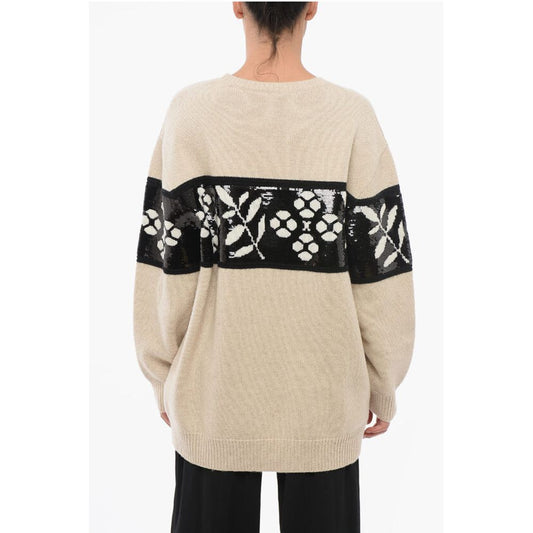 Max Mara Cashmere Blend FAGGI Crew Neck Pullover with Sequined Embroi