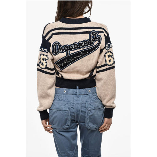 Dsquared² Wool Blend Crew-neck Sweater with Embroidery