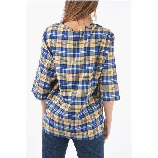 Woolrich Plaid Checked Oversized T-shirt with Maxi Monogram Patch
