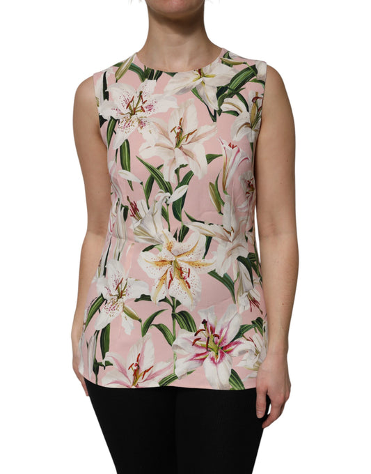 Dolce & Gabbana Pink Floral Print Sleeveless Tank Blouse Top