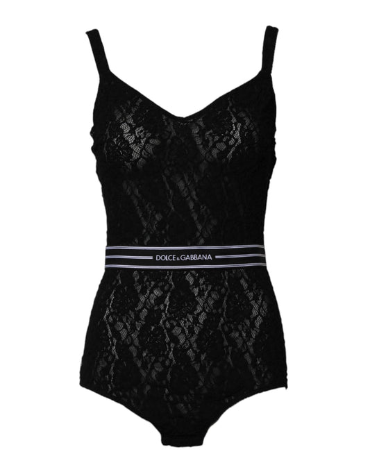 Dolce & Gabbana Black Lace Branded Elastic Lingerie Bodysuit Underwear