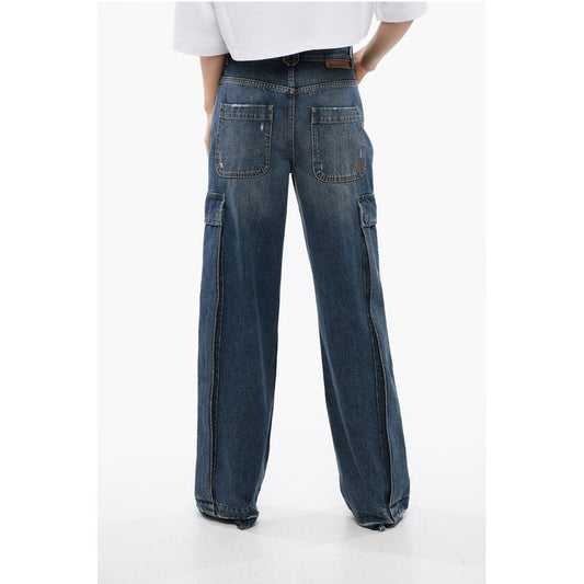 Stella McCartney Straight Leg Cargo Jeans with Frayed Hem 26cm