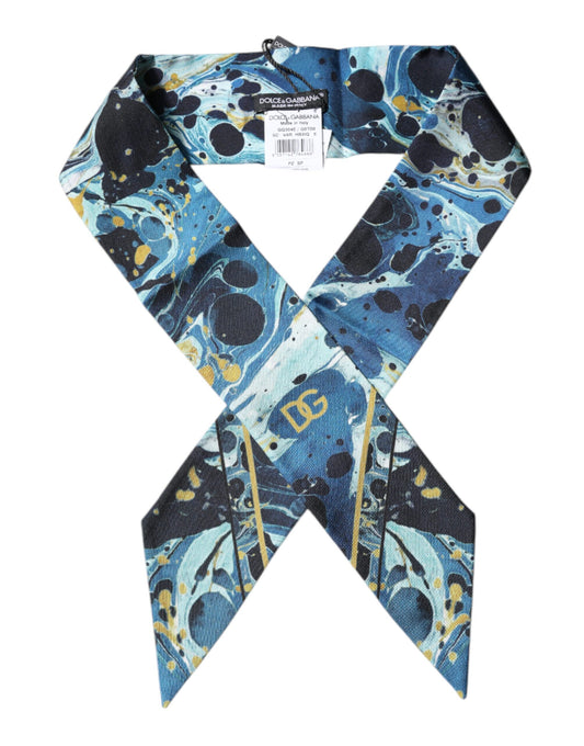 Dolce & Gabbana Blue Marble Print Silk Skinny Foulard Scarf