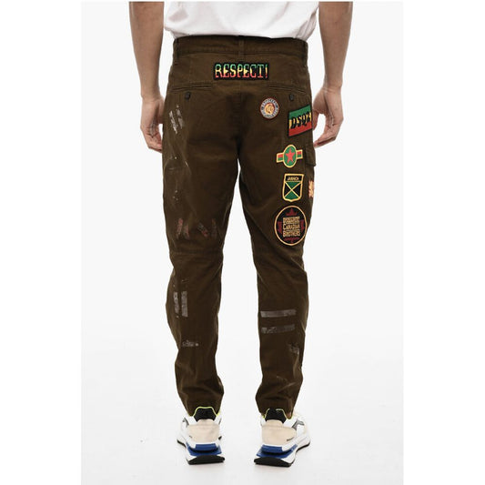Dsquared² Vintage Effect Cargo Pants with Patches Embroidery