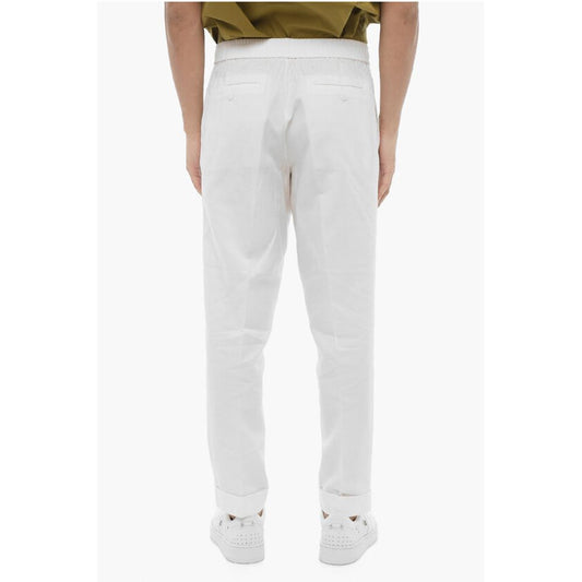 Neil Barrett Tapered Fit Linen Blend Pants with Double Pleat