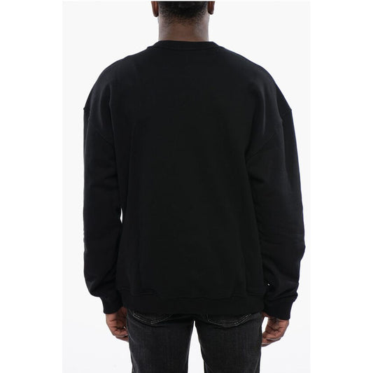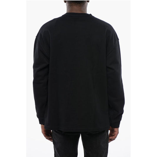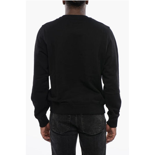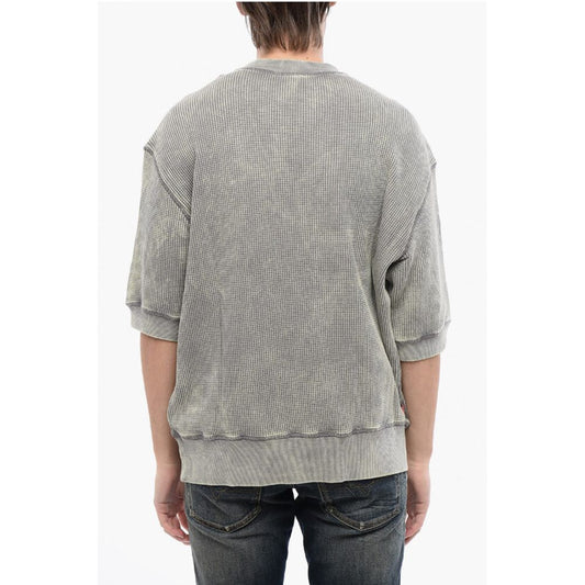 Diesel Solid Color S-NABEL-M Crew-neck Sweatshirt with Cracked Effe