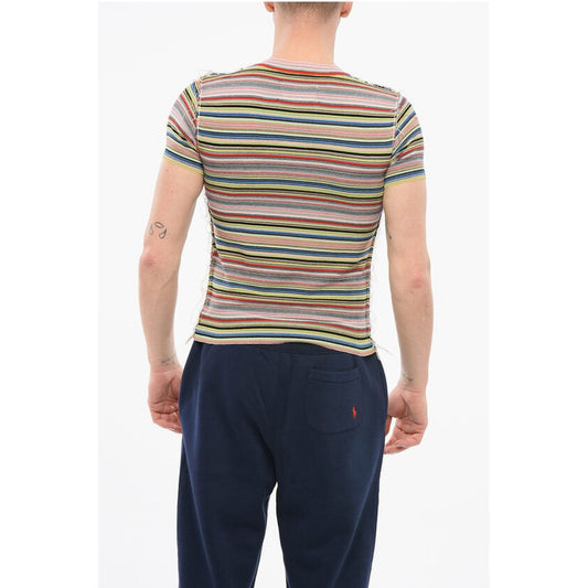 Maison Margiela Short-sleeved REVERSE Crew Neck Sweater with Striped Motif