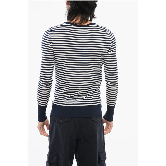 Dolce & Gabbana Crew Neck Virgin Wool Sweater with Awning Stripe Motif