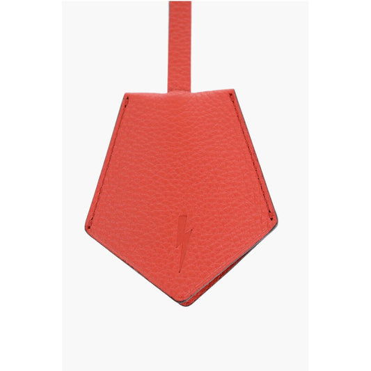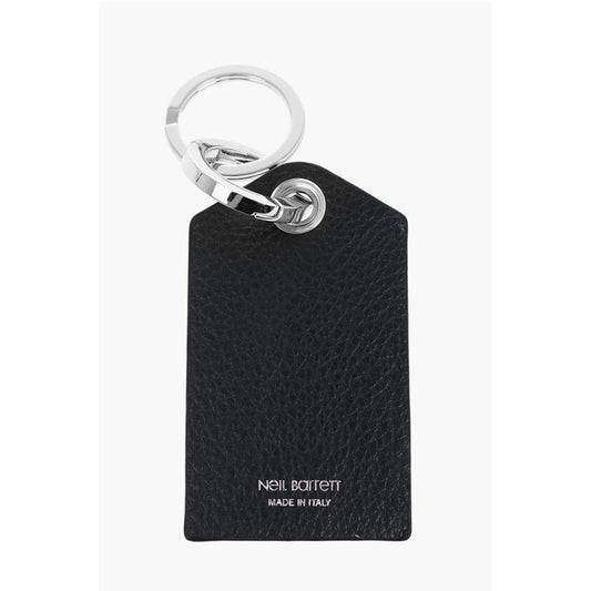 Neil Barrett Keyring with Textured Leather Pendant and Thunderbolt Detail