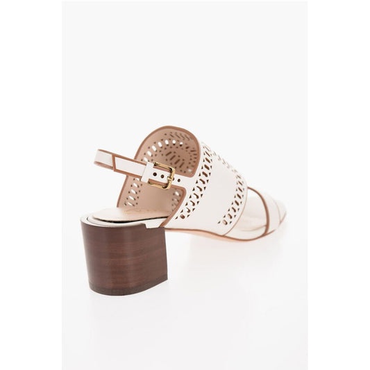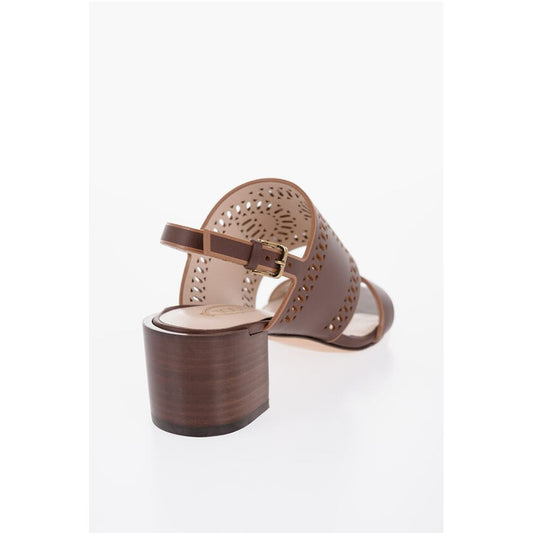 Tod's Laser Cut Leather Sandals with Wooden Heel 5,5cm