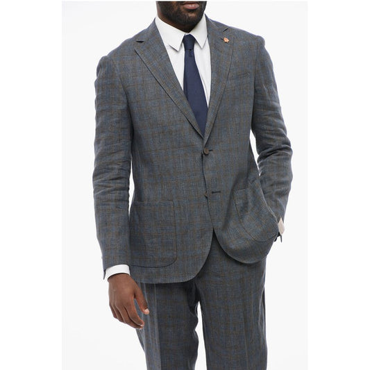 Corneliani CIRCLE Linen Single Breasted Suit With Check Motif