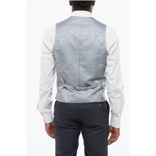 Corneliani Blended Silk Damasked Motif Vest with Half-Belt