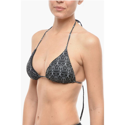 Karl Lagerfeld Triangle Bikini Top with All-Over Iconic Print