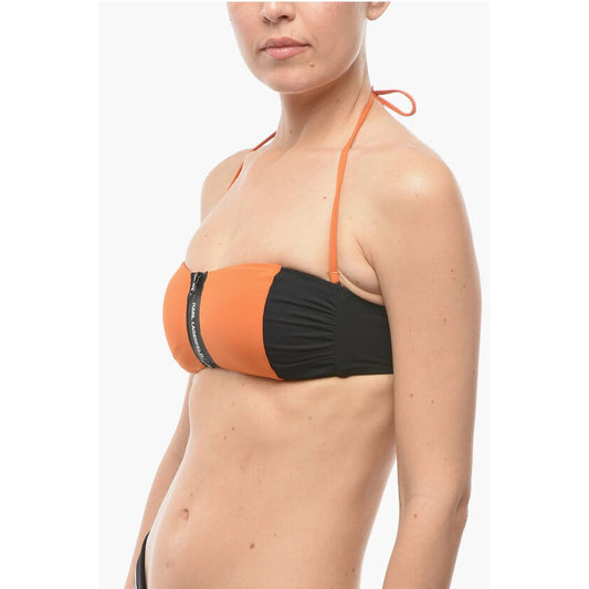 Karl Lagerfeld Bandeau Bikini Top with Printed Contrasting Logo