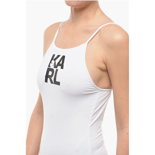 Karl Lagerfeld Solid Color One-Piece Swimsuit with Printed Logo