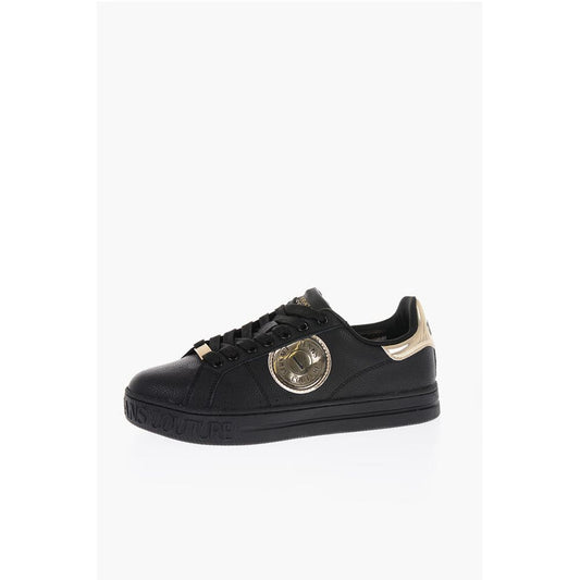 Versace JEANS COUTURE Textured Leather Low-Top Sneakers with Golden