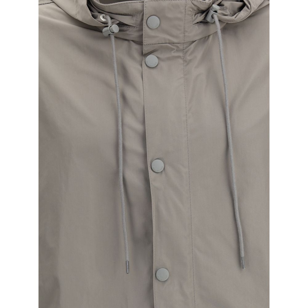 The Balenciaga waterproof Jacket combines technical functionality and urban style with a distinctive design. Crafted with an adjustable drawstring hood and high collar, it features a double-slider front zipper closure and buttoned flap for complete protection. Side welt pockets, elastic cuffs and an adjustable hem with inner drawstring ensure comfort and practicality. The iconic detail? The iconic scotch-effect monogram printed on the back panel, which adds a graphic and recognizable touch. The oversized fit completes the look with a contemporary flair.