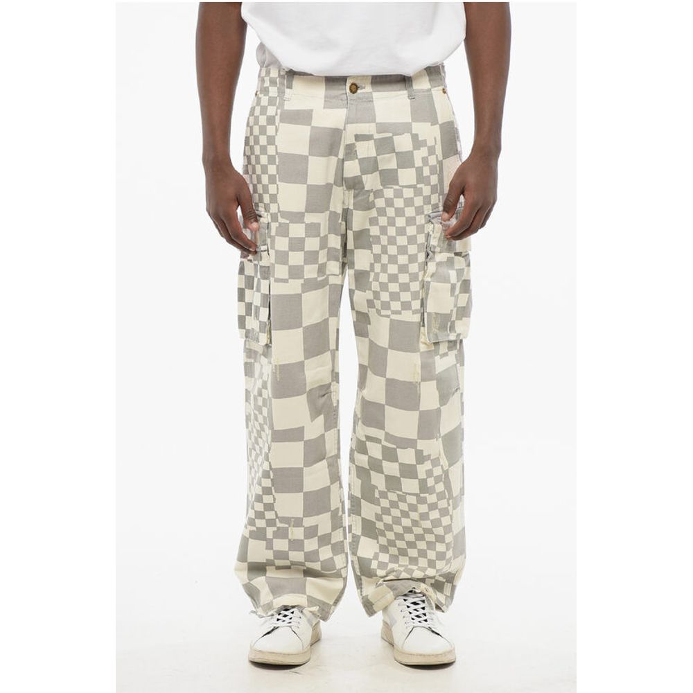 ERL Distressed Effect Two-Tone Checked Cargo Pants