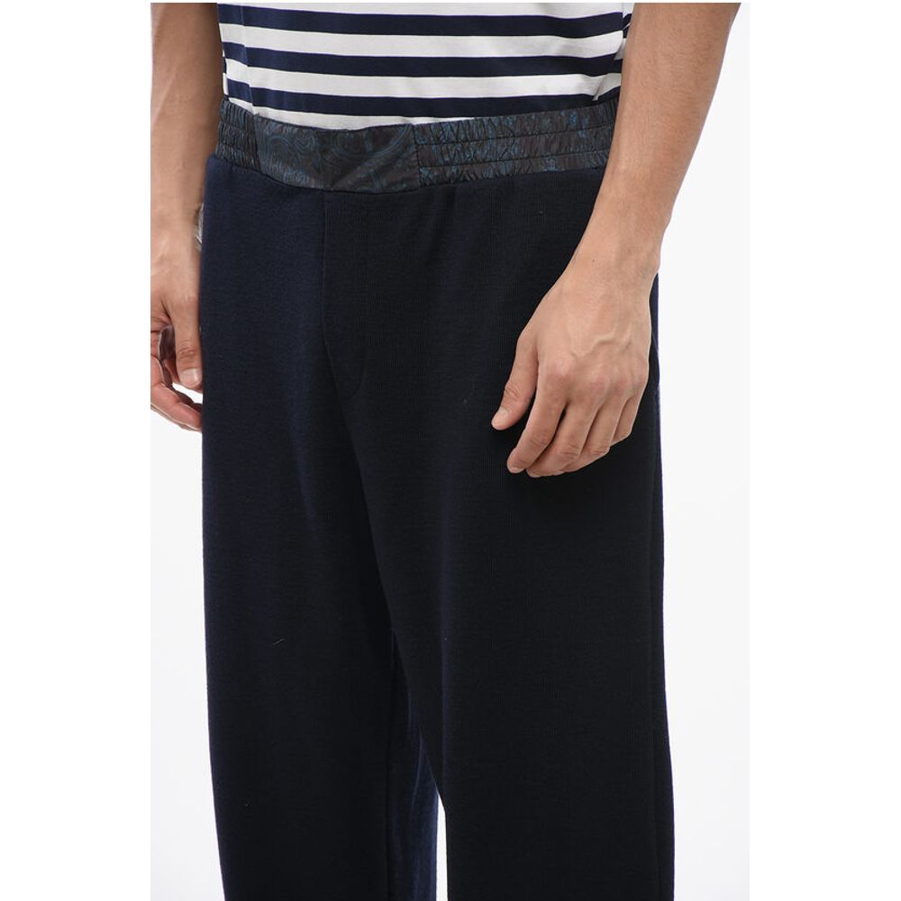 Etro Knitted Sweatpants with Paisley Patterned Nylon Elastic Wais