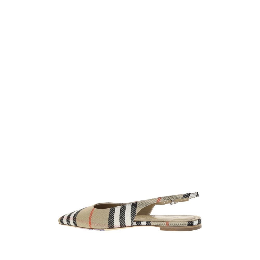 Burberry’s Birdie Check slingback Ballerinas are an elegant blend of style and comfort, crafted from a cotton blend with classic Burberry Check and a metallic yarn that enhances their sophistication. The B-shaped buckle strap adds a distinctive detail, while the quilted leather insole with soft padding ensures optimal comfort. The flat sole, embellished with the imprinted Equestrian Knight Design, completes the look, with the elongated toe adding a touch of timeless elegance.