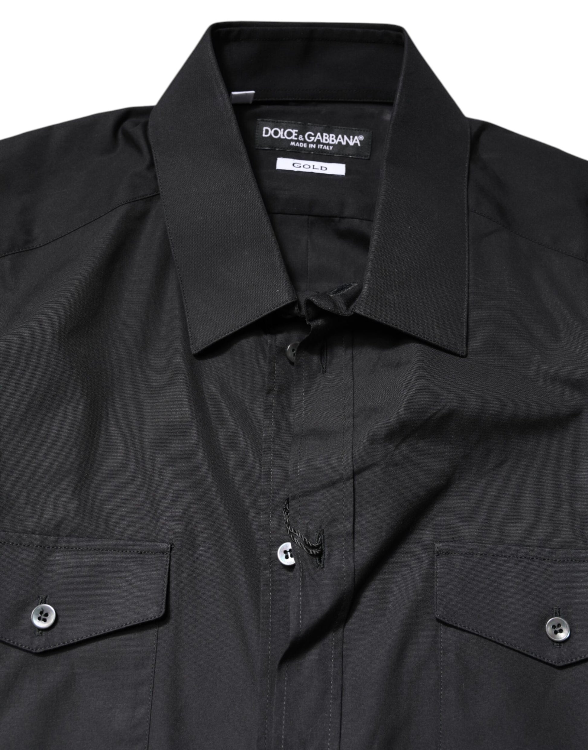 Dolce & Gabbana Black Short Sleeves Cotton GOLD Casual Shirt