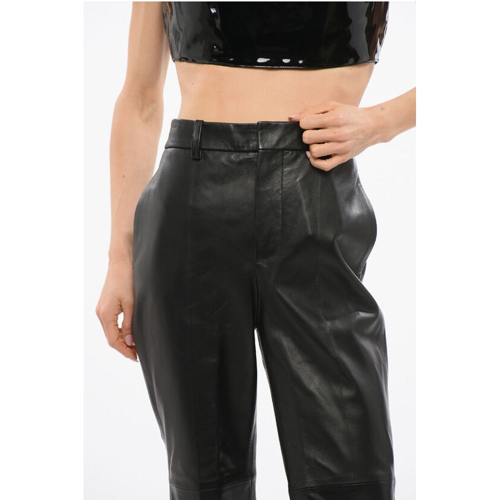 Dsquared² Leather Bootcut Cropped Fit Pants