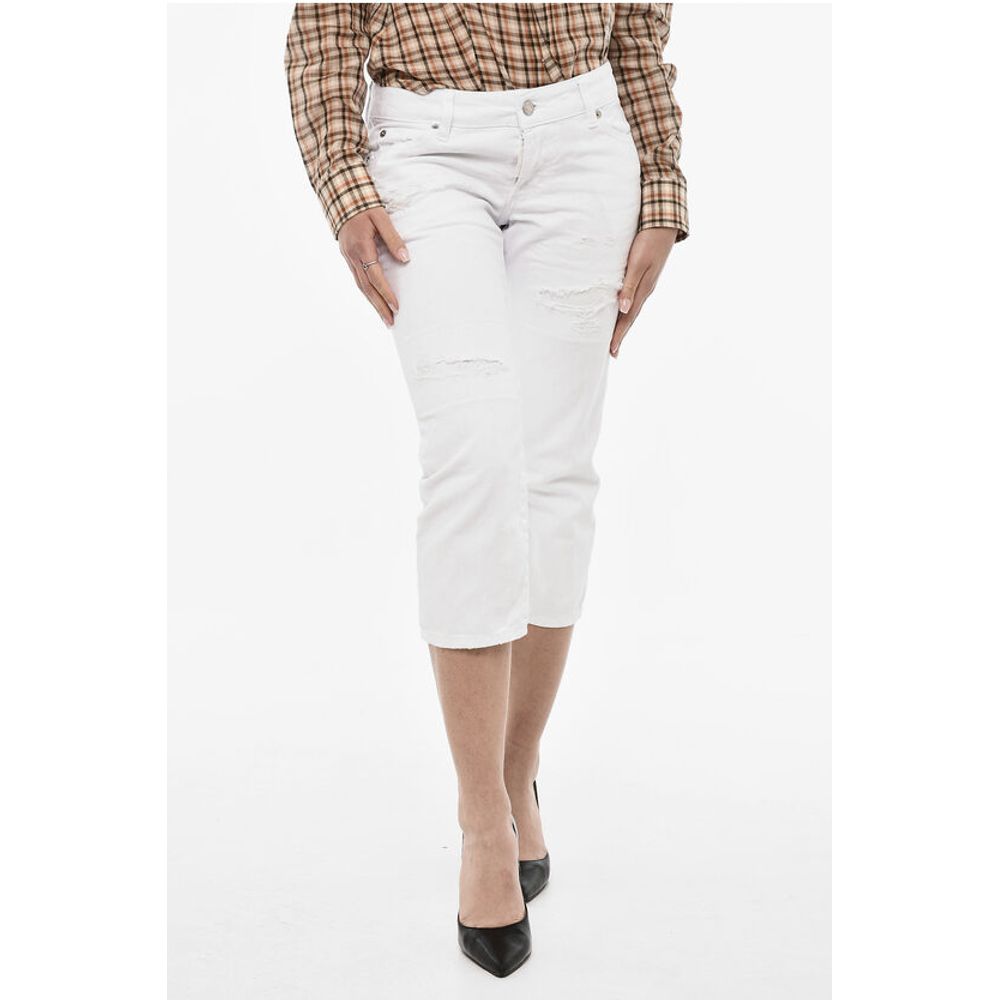Dsquared² WHITE BULL Vintage Effect Cropped Light Wash Jeans