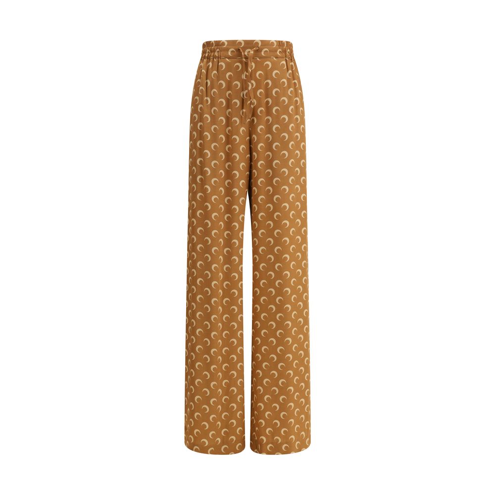 Marine Serre’s Satin Moon Pants combine comfort and style with an elastic waistband that can be adjusted via drawstring and a fluidly cut wide leg. Two side welt pockets add functionality, while the iconic Moon pattern decorates the garment with elegance and recognition. A contemporary must-have with a polished and sophisticated finish.