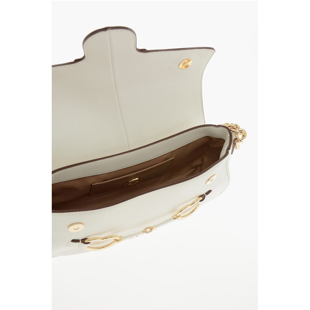 Moschino LOVE Textured Faux Leather Shoulder Bag with Clamp Front