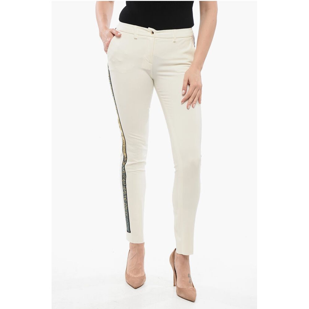 Philipp Plein COUTURE Straight Leg VERONIQUE Pants with Rhinestone Side Ba