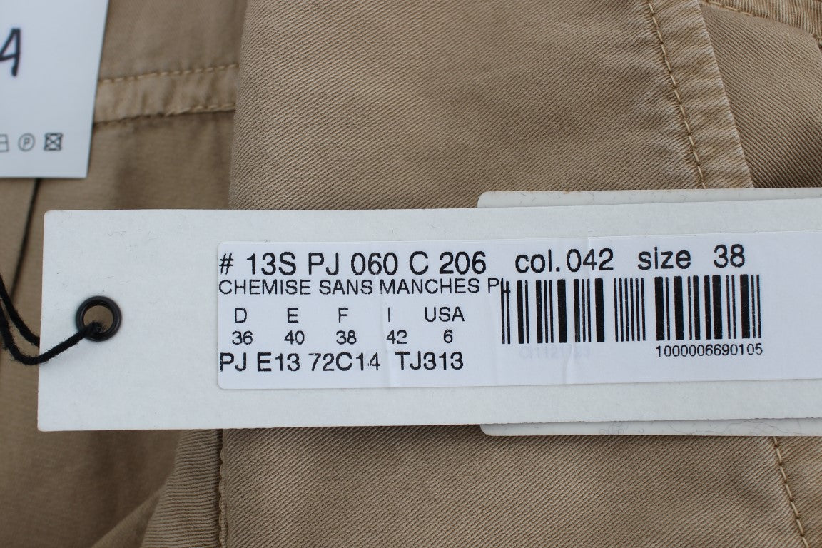 Infuse effortless elegance into your wardrobe with this gorgeous beige, sleeveless blouse from PLEIN SUD. Perfect for those seeking a blend of sophisticated style and comfort, this 100% authentic shirt features a sleek button front and subtle logo details. Its pure cotton composition ensures breathable wear, making it an ideal choice for any occasion.